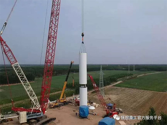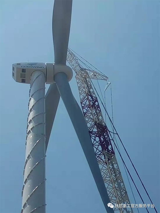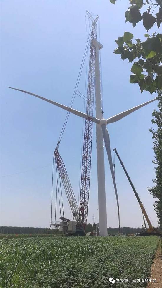遼寧撫挖安基能源工程有限公司在北京航天·貴州電建 南宮300MW風(fēng)電場(chǎng)項(xiàng)目施工中,于2019年7月3日在河北省邢臺(tái)市南宮市完成首臺(tái)單機(jī)容量3.0MW、輪轂中心高度104米的風(fēng)機(jī)安裝,這既是我公司首臺(tái)高度更高 、重量更大 的3.0MW-140米風(fēng)機(jī)安裝,也是目前為止風(fēng)機(jī)廠家-金風(fēng)科技的 3.0MW-140米柔塔風(fēng)機(jī)批量吊裝施工的開始,為遼寧撫挖安基能源工程有限公司在風(fēng)電施工領(lǐng)域填寫輝煌的一筆。
